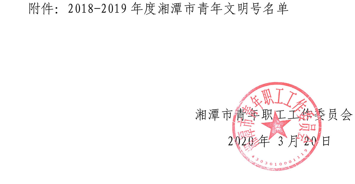 為樹立典型,表彰先進(jìn),進(jìn)一步激發(fā)湘潭市團(tuán)員青年立足本職建功立業(yè)的積極性和創(chuàng)造性,深入推動青年文明號創(chuàng)建工作,經(jīng)層層推薦、交叉檢查,湘潭市青年職工工作委員會從 25個申報集體中,認(rèn)定湘潭華進(jìn)重裝有限公司制造部等 20 個青年集體為 2018-2019 年度湘潭市青年文明號。